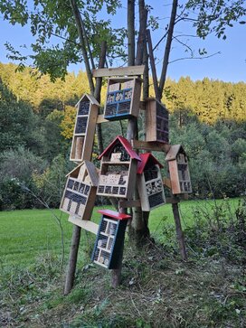 Ganz im Zeichen von Natur und Nachhaltigkeit stand das Ferienprogramm. 14 Kinder trafen sich gemeinsam mit Initiator Franz Wagner in der Garage von Rosi und Anna-Lena Gigler, um unter fachkundiger Anleitung Insektenhotels zu bauen. Ziel der Aktion war es, den neuen Kinderwanderweg am Campingplatz in Unterholzen mit den selbstgebauten Behausungen für Wildbienen und andere nützliche Insekten auszustatten. Damit leistet der Wald-Verein einen Beitrag zum Schutz der Artenvielfalt - ein Thema, das derzeit viele bewegt.