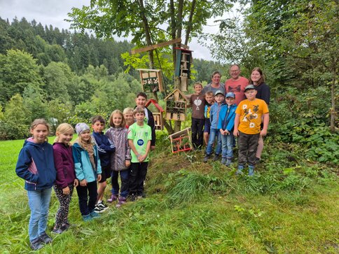 Dank der Vorarbeit von Rosi Gigler, die die Bausätze vorbereitet hatte, konnten die jungen Handwerker gleich mit Bohren und Hämmern loslegen. Nach einigen Stunden Arbeit waren alle glücklich darüber, etwas Sinnvolles für Natur und Umwelt getan zu haben.